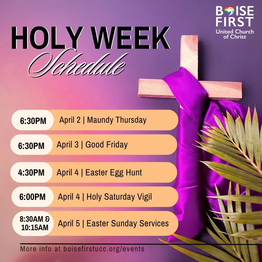 Interested in becoming a member of Boise First United Church of Christ or learning more about our community? Join Rev. Josh after service for one hour on Sunday, March 22nd. This informal gathering is a great opportunity to ask questions, learn about the history, values, and mission of our church, and find out how you can get involved. Whether you're new to the church, a new member, or just looking for more information, all are welcome.